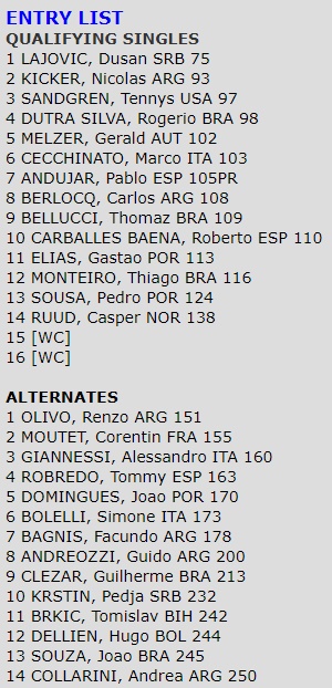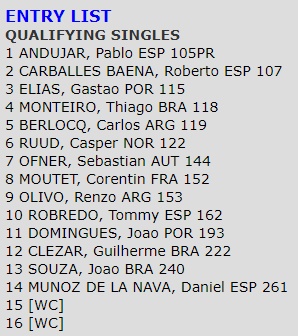 A fase de qualificação do Argentina Open (10 e 11 de fevereiro) conta com a presença de Gastão Elias e Pedro Sousa, enquanto João Domingues surge no 5.º lugar da lista de alternates.