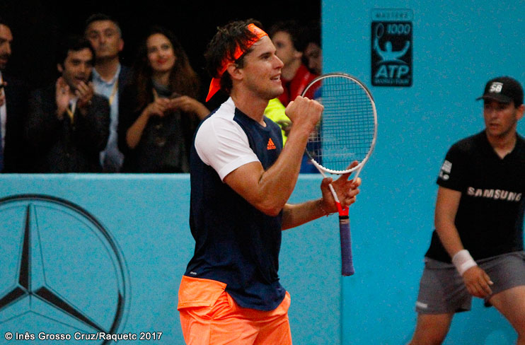 Qualificado para uma fase tão adiantada de uma prova desta categoria pela primeira vez, Thiem já sabe que o seu próximo adversário em Madrid será o uruguaio Pablo Cuevas (27.º), também ele estreante em meias-finais de eventos Masters 1000. Está, portanto, garantido um finalista inédito em torneios deste nível.
