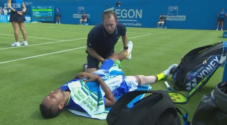 Nick Kyrgios, um dos vários nomes fortes da edição deste ano do prestigiado torneio de Queen’s, desistiu esta segunda-feira na primeira ronda da prova londrina de categoria ATP 500, depois de ter perdido o tie-break frente ao norte-americano Donald Young [7-6(3)]. Minutos antes, o tenista australiano chegou a ser assistido em court após uma queda.