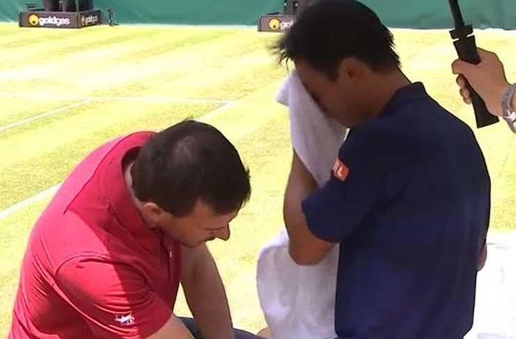 Pelo terceiro ano consecutivo, Kei Nishikori abdicou de continuar a disputar o torneio de Halle, na Alemanha. Depois da desistência nas meias-finais em 2015 (frente a Andreas Seppi) e na segunda ronda em 2016 (frente a Florian Mayer), o número 9 mundial esteve hoje em campo durante 34 minutos, no duelo com Karen Khachanov referente aos oitavos de final, antes de colocar termo à sua participação.