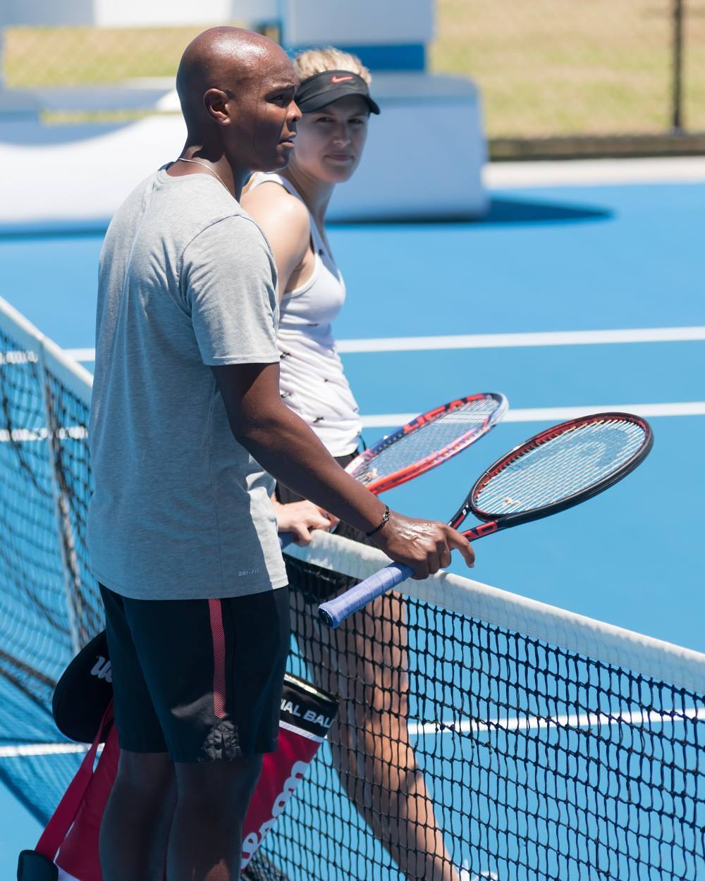Atualmente em Perth, onde se prepara para competir na Hopman Cup, a jovem canadiana de 23 anos foi fotografada a treinar num dos courts juntamente com Robbye Poole, nada mais, nada menos do que o antigo hitting partner de Serena Williams.