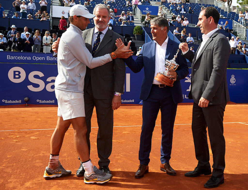 A cerimónia teve como objetivo enaltecer a cooperação de uma vida entre Toni Nadal e o seu sobrinho, mas também a contribuição que o treinador espanhol teve no crescimento do torneio catalão da série ATP 500.