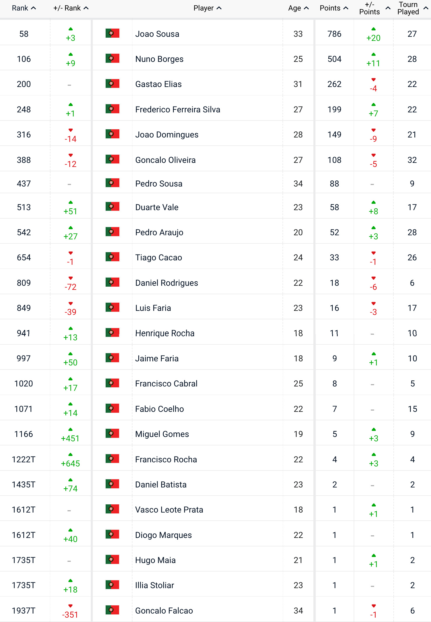 O mesmo aconteceu a Francisco Rocha, que pelo mesmo resultado em Idanha-a-Nova assegurou uma ascensão de 645 posições para se estabelecer como 1222.º classificado do ranking.