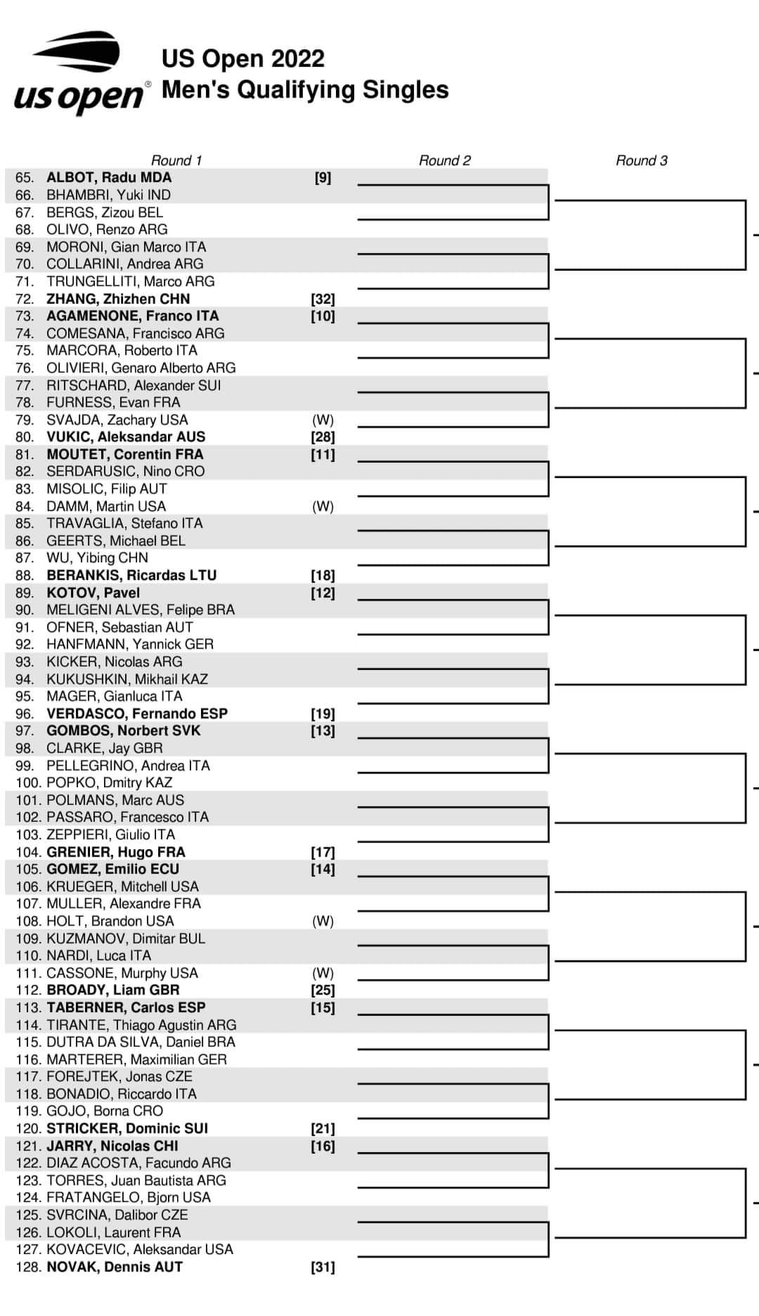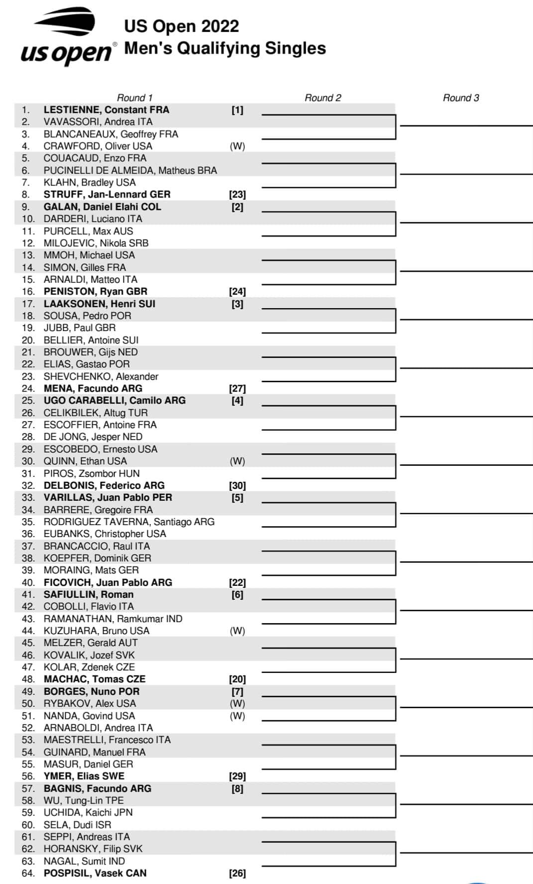 Em estreia absoluta em Flushing Meadows, Nuno Borges é o único dos três representantes nacionais entre os cabeças de série (sétimo) e terá pela frente na eliminatória inaugural o norte-americano Alex Rybakov, que conhece desde os tempos em que estudou e competiu no circuito universitário dos EUA.