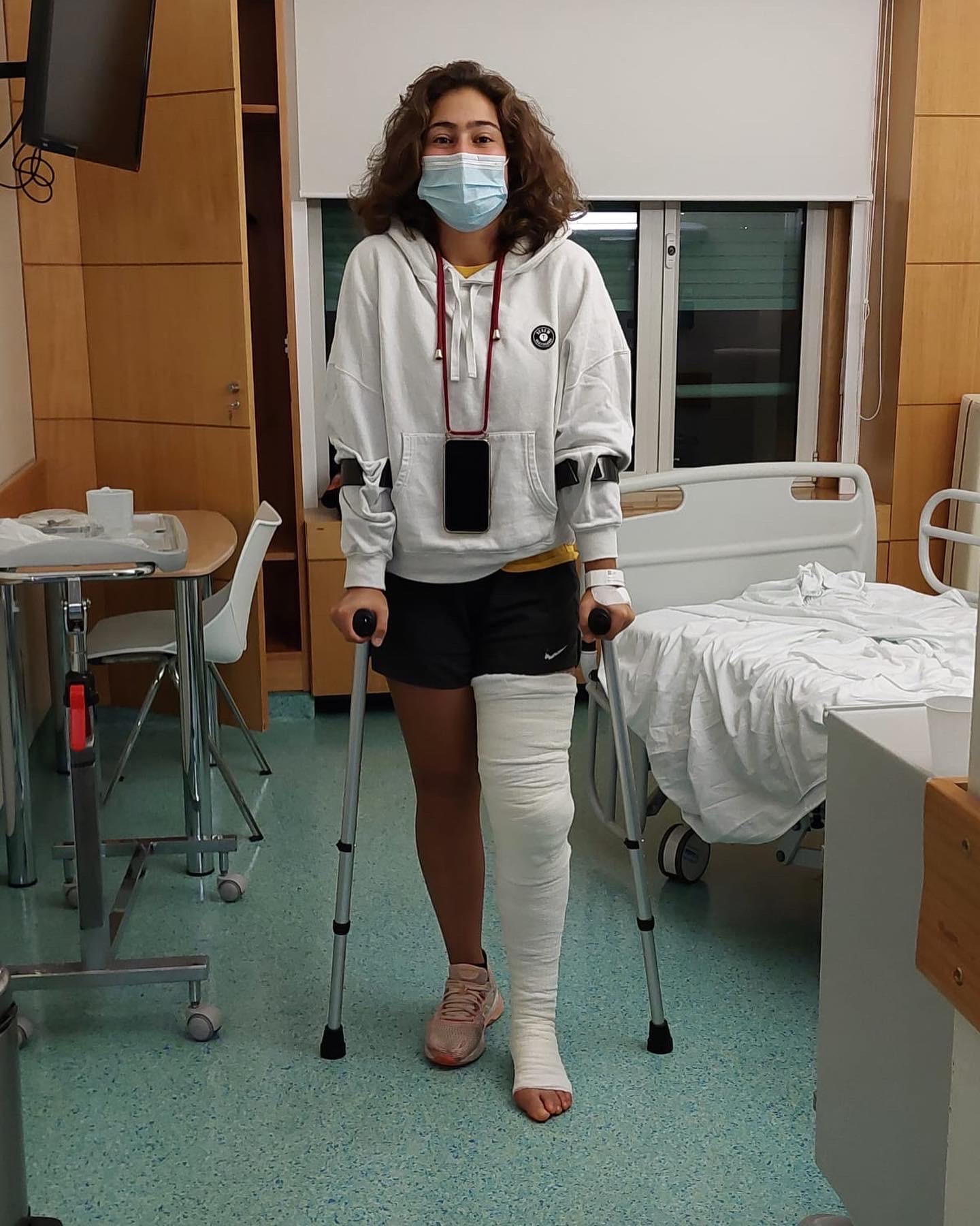 Fui operada no Hospital CUF Descobertas pelo Dr. Ricardo Telles de Freitas, que conheci por intermediário do Frederico Gil. É bom quando temos do nosso lado pessoas que nos querem ver bem e ajudar. O médico fez um trabalho incrível desde a primeira consulta, desde explicar como iria proceder durante a operação até como seria toda a recuperação. Não digo que foi fácil ouvir tudo, especialmente que a recuperação para voltar a competir seria de oito meses (para voltar à vida normal são três meses), mas foi algo que o meu cérebro assimilou rapidamente. Eu só queria ser operada para conseguir andar normalmente.