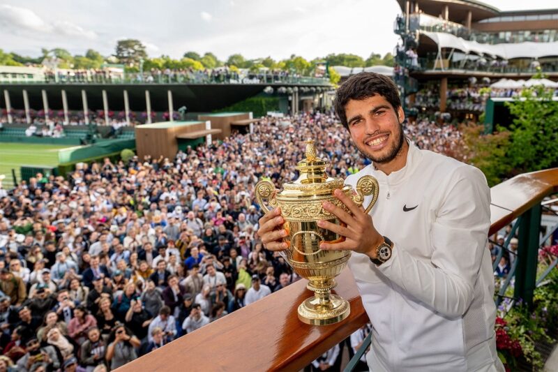 A vitória em Wimbledon fez de Carlos Alcaraz um ‘alvo’ imediato para a imprensa e por isso esta segunda-feira começou com muitas entrevistas, entre as quais uma conversa em direto com a CNN através de uma vídeo-chamada na qual o espanhol protagonizou um momento caricato e muito divertido ao deixar cair parte do troféu conquistado menos de 24 horas antes.