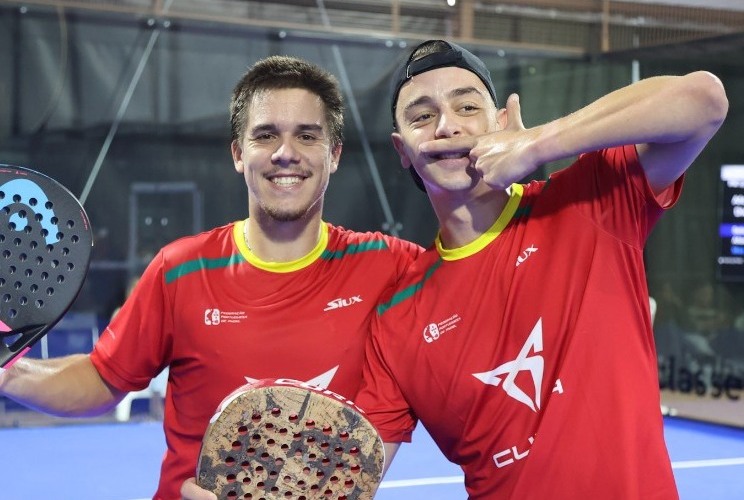 Afonso Fazendeiro e Diogo Jesus levaram a melhor contra os irmãos Miguel Deus e Nuno Deus por 7-6(6), 2-6 e 6-4 e venceram a final masculina de duplas do European Absolutes Open Pairs Championship, o “Campeonato da Europa” organizado pela Federation of European Padel na Oeiras Padel Academy, em Portugal.