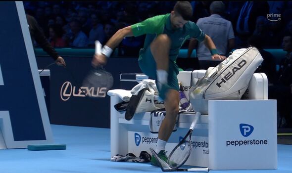 Inconformado pelo break sofrido, o sérvio de 36 anos não reservou a raiva e pisou as raquetas numa das mudanças de lado, destruindo-as por completo. O vídeo do momento de maior tensão do encontro: