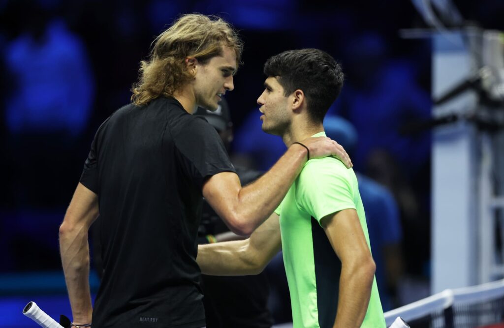 De regresso a Turim dois anos depois de lá ter saído com o segundo título da competição na bagagem, Alexander Zverev (8.º) iniciou da melhor maneira possível as aspirações a uma nova ida às meias-finais e deu o primeiro passo. O alemão reagiu da melhor maneira a um parcial perdido frente ao número dois mundial Carlos Alcaraz (2.º) e em mais de duas horas e meia conseguiu a ‘cambalhota’ por 6-7(3), 6-3 e 6-4 frente ao espanhol que faz a sua estreia no ATP Finals.