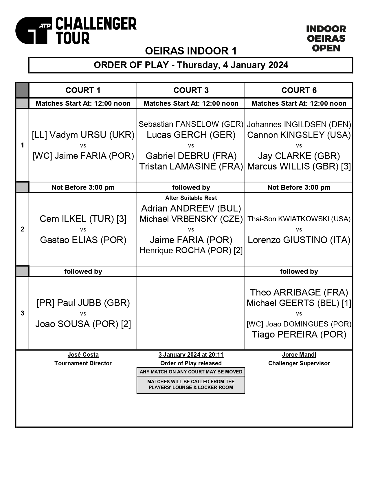Caso não possa deslocar-se até ao Jamor já sabe: pode acompanhar todos os encontros no site oficial do torneio (Indooroeirasopen.pt) e a Sport TV entra em direto a partir das 15 horas.