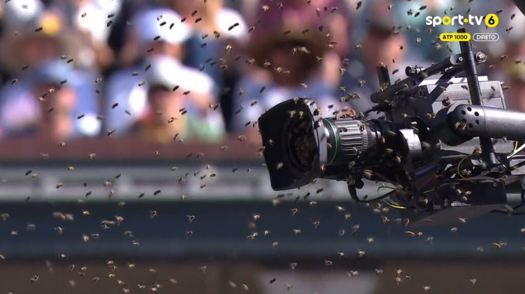 Os insetos terão definido como alvo central uma das câmaras afetas à transmissão televisiva do encontro, onde se conglomeraram em grande número, mas também se apoderaram do restante espaço, sobretudo na metade onde se encontrava Alcaraz — que terá sido picado antes de se enclausurar.