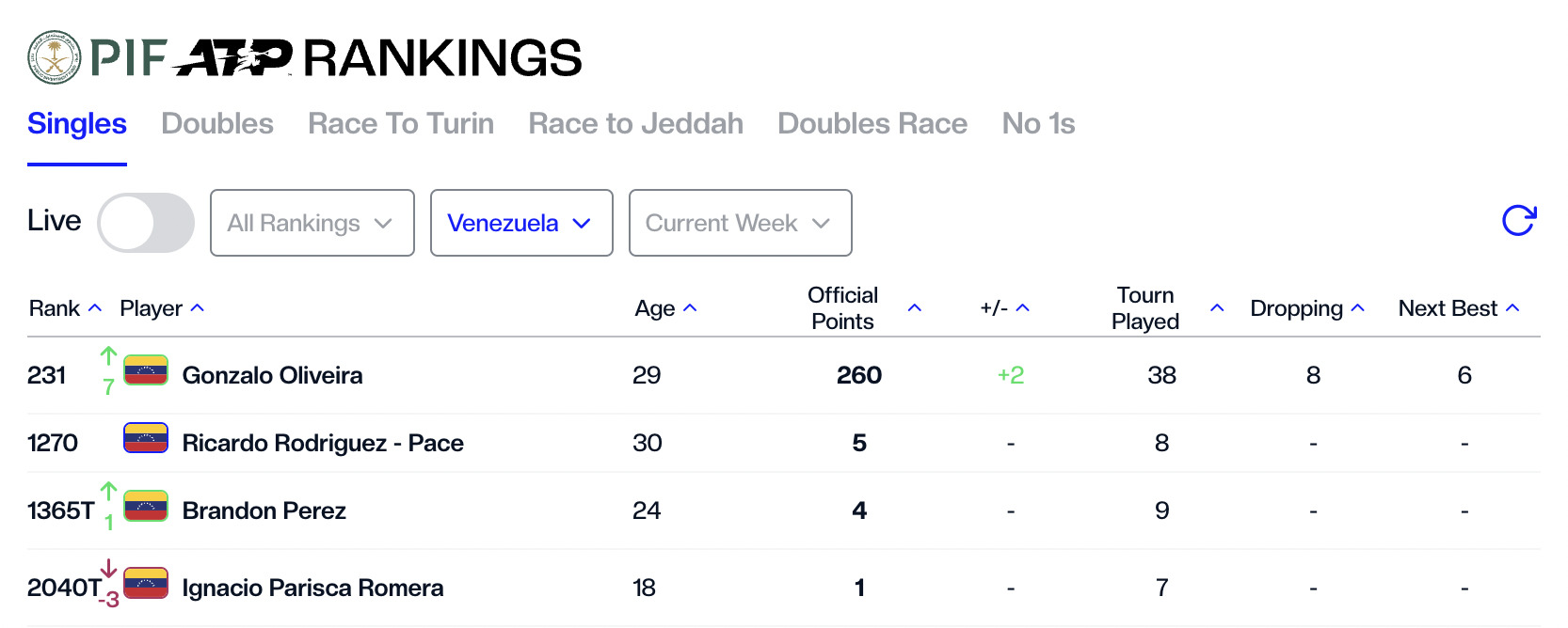 Gonçalo Oliveira anunciou na terça-feira que passará a representar a Venezuela e esta quinta-feira a ATP consumou-o, apresentando o tenista natural do Porto na lista de jogadores daquele país sul-americano.