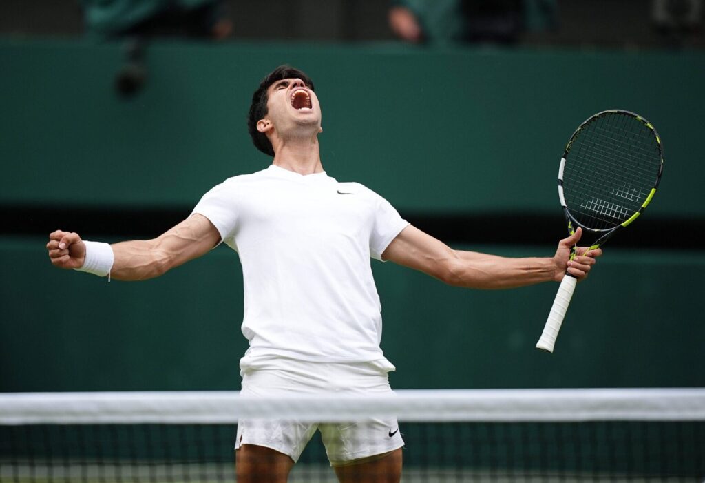 Carlos Alcaraz repetiu o triunfo de 2023 sobre Novak Djokovic na final de Wimbledon e defendeu o título na edição de 2024, aumentando para 4-0 o registo em finais de torneios do Grand Slam.