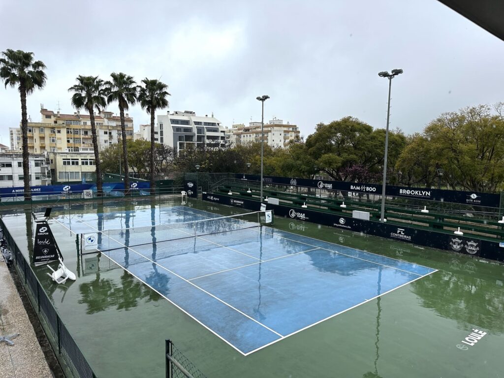 FARO — Pelo segundo dia consecutivo, a chuva obrigou à transferência dos encontros do Loulé Open by Cimpor para Faro, onde este sábado serão jogados os quartos de final de singulares. As meias-finais, previstas para a tarde, permanecem em cima da mesa.