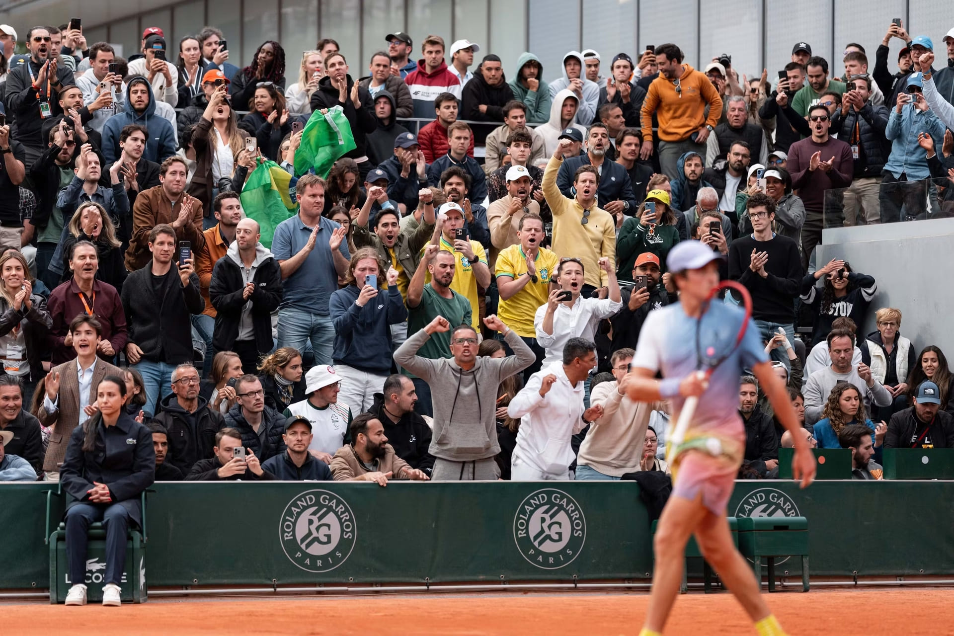 Naquele Court 14, antes de ser ovacionado em uníssono, João Fonseca precisou de resistir ao envolvimento do público francês, conhecido pelos cânticos, assobios e apupos que podem levar à loucura qualquer visitante. Mas, ao contrário de tantos que já sucumbiram perante tais atmosferas, este brasileiro que em fevereiro conquistou o primeiro título ATP perante centenas de argentinos em Buenos Aires lidou com tudo como mais um dia normal: “Quer dizer… eu venho do Brasil [risos]. O público brasileiro é barulhento, faz-se ouvir. É uma boa sensação, foi ótimo ouvir o público brasileiro a gritar o meu nome e o público francês a gritar o dele.“