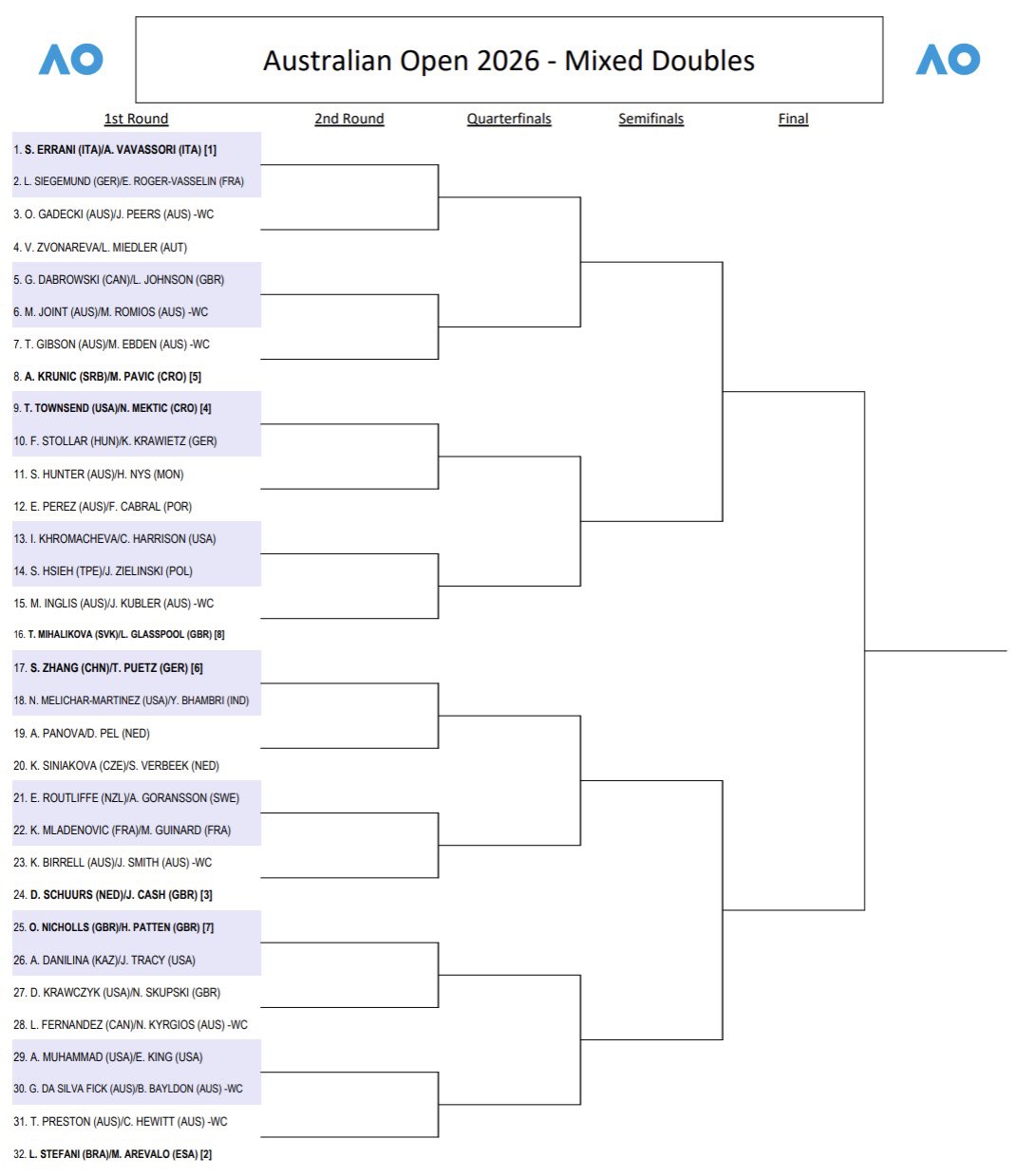 Se superarem a primeira ronda, Cabral e Perez podem enfrentar nos oitavos de final os quartos cabeças de série, Taylor Townsend (EUA) e Nikola Mektic (Croácia).
