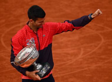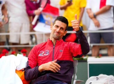 Novak Djokovic veste casaco “23” logo após a conquista de Roland-Garros