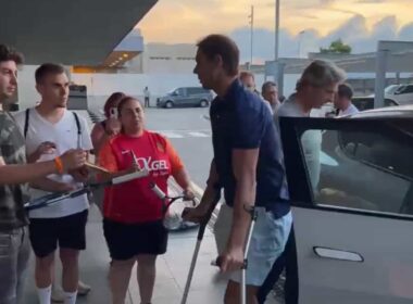 Nadal chega a Maiorca de muletas depois de fazer tratamento ao pé esquerdo em Barcelona
