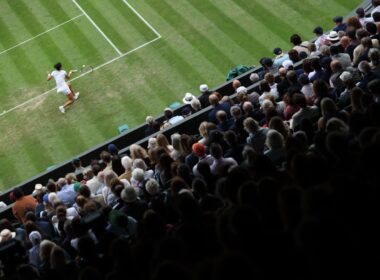A relva ainda verde, mas já desgastada pelos primeiros dias de ação, os courts exteriores totalmente preenchidos e…